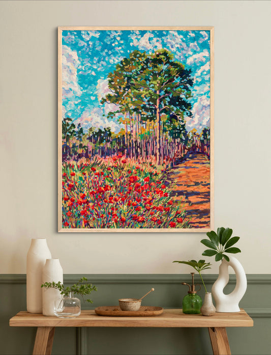 The act of painting takes time, and allows the artist to sit with the scene, to notice new nuances. The collector connects familiar landscapes, choosing to invest in bringing the beauty portrayed into their home and in doing so supports the artist's ability to keep creating.