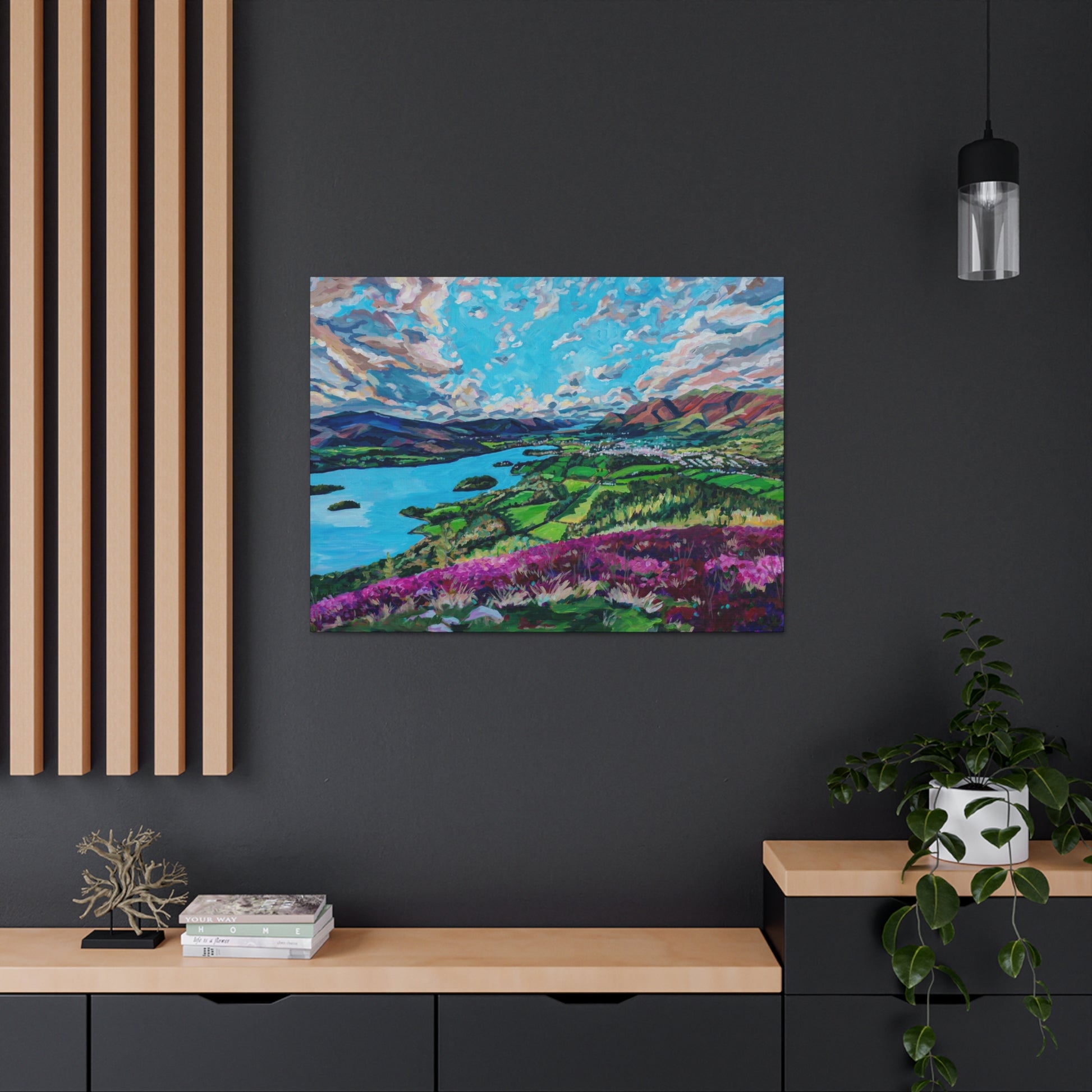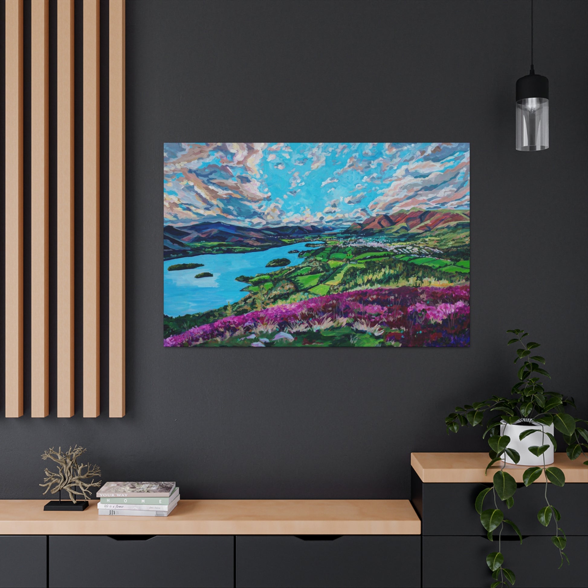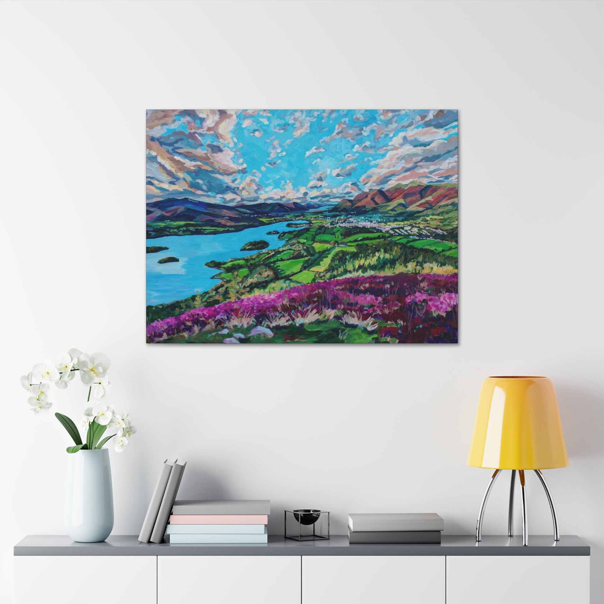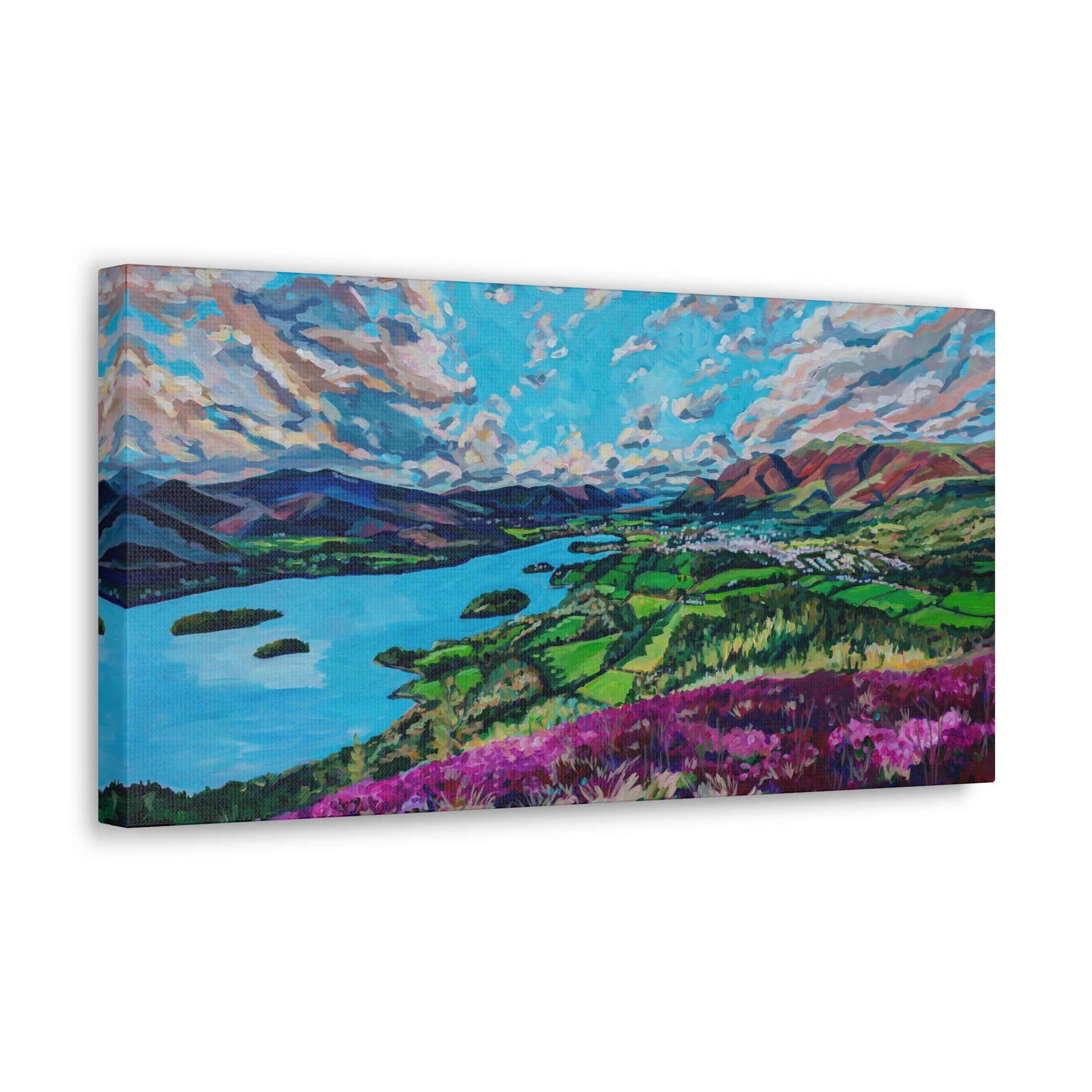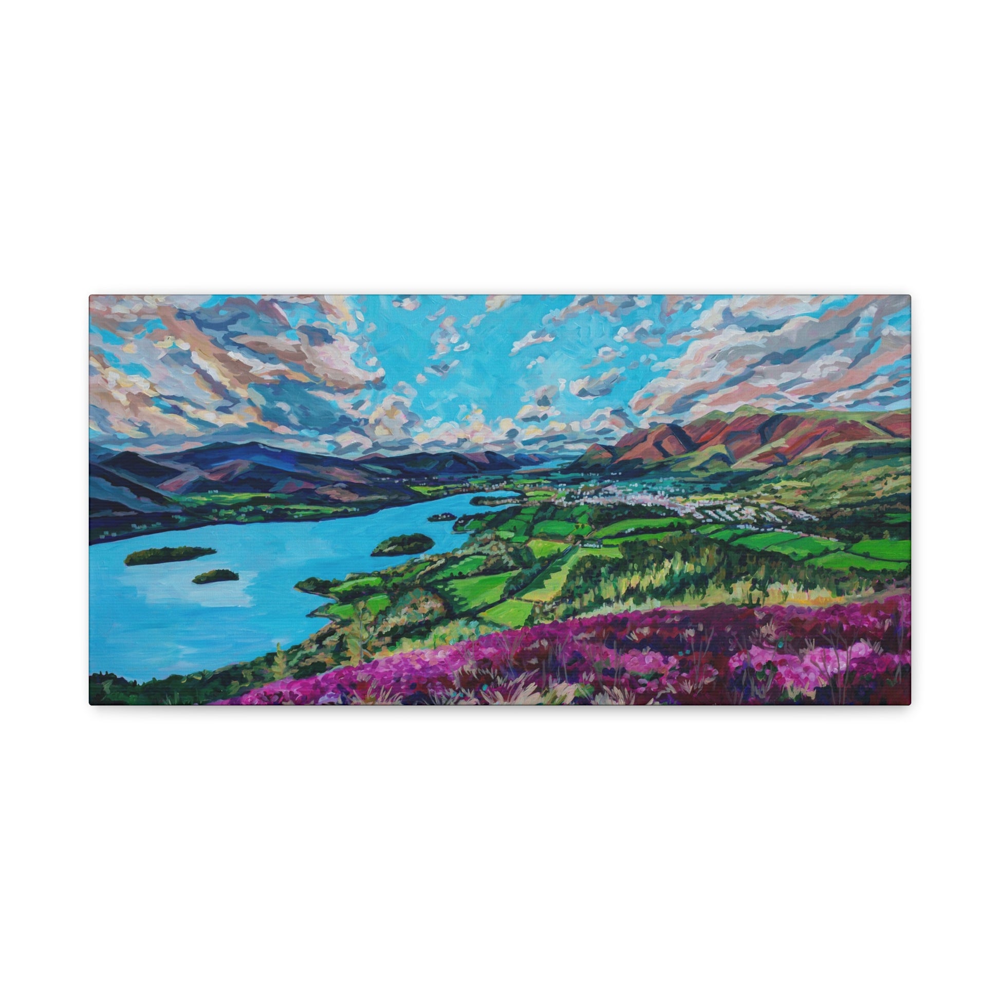 Derwent Water lake and town of Keswick, Cumbria—UK— Gallery Wrapped Canvas Reproduction
