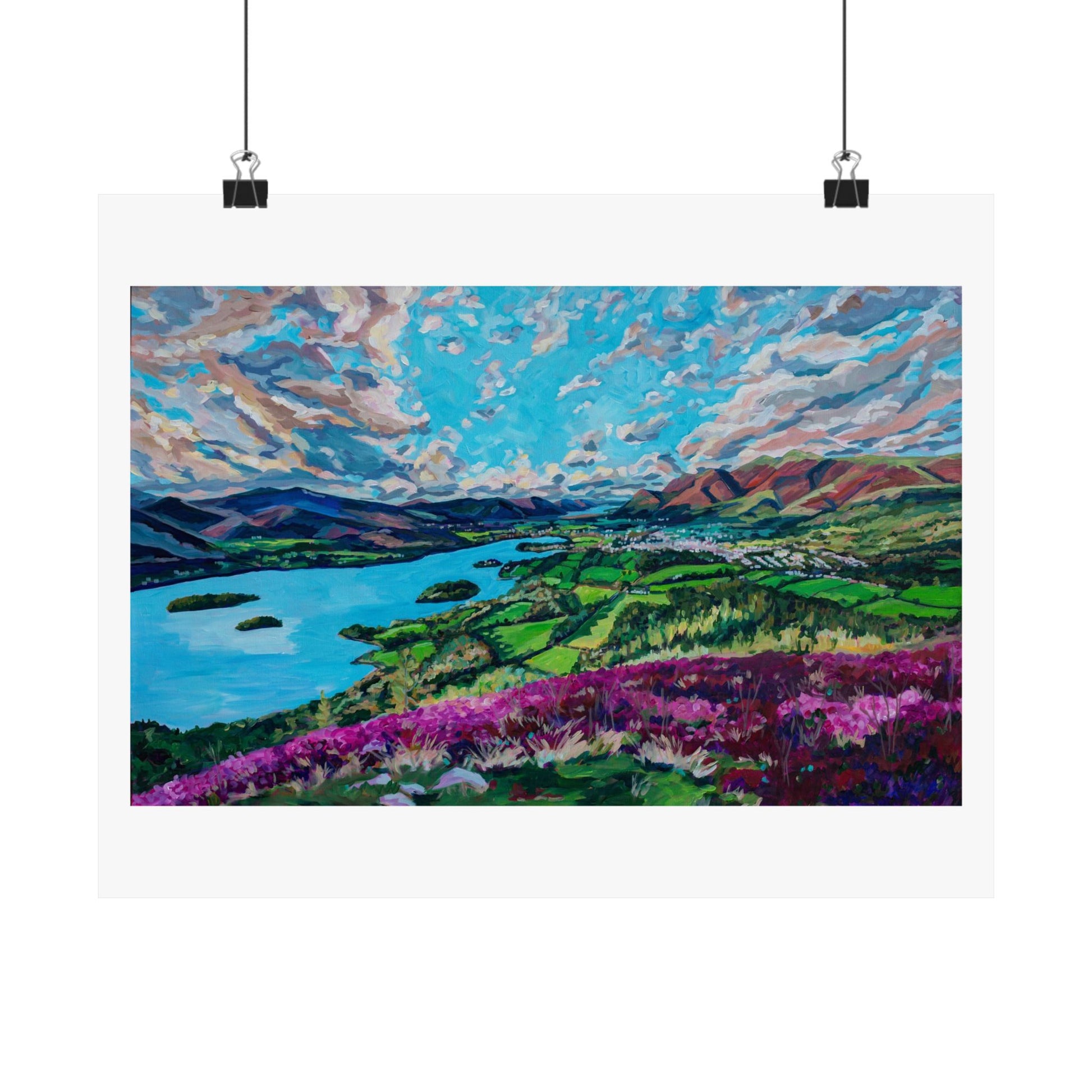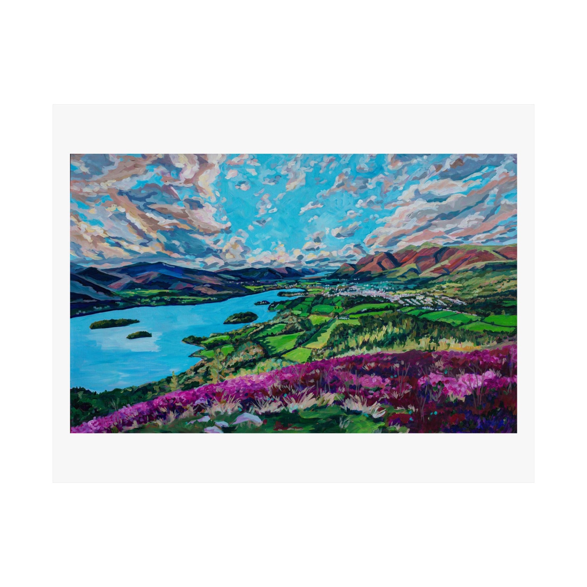 Derwent Water lake and town of Keswick, Cumbria—UK —Matte Horizontal Poster Reproduction