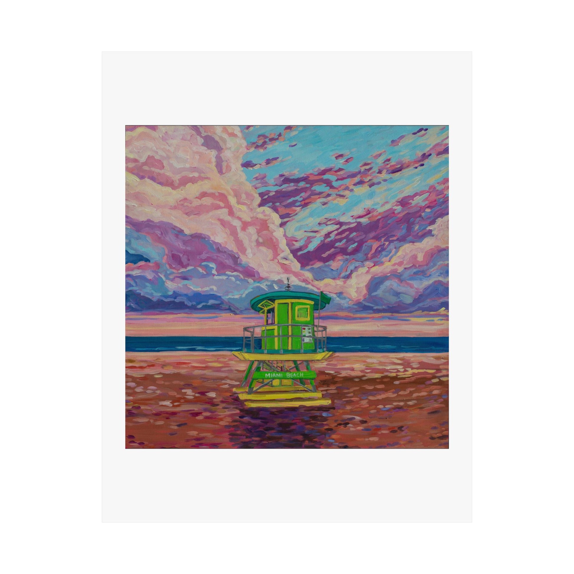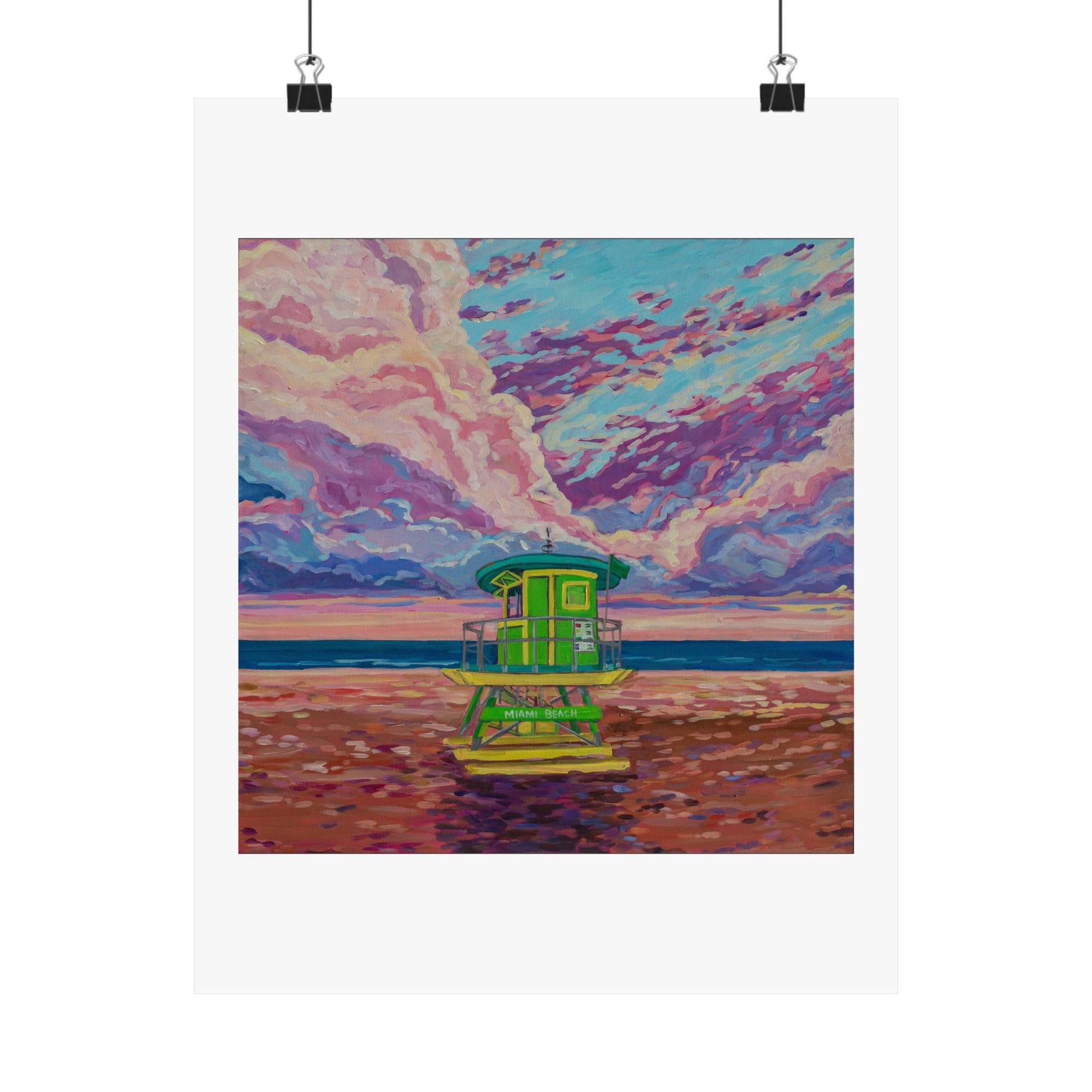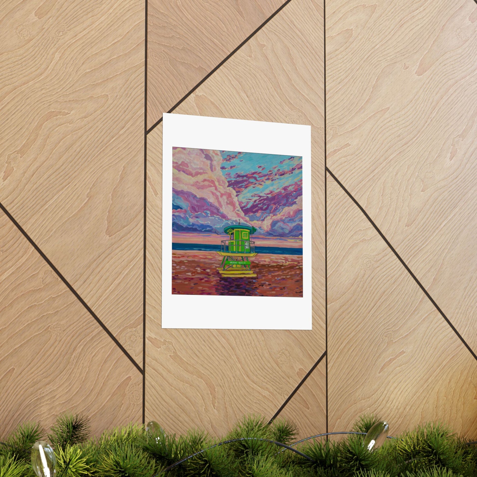 Green lifeguard station Miami Beach— Matte Paper Poster Reproduction