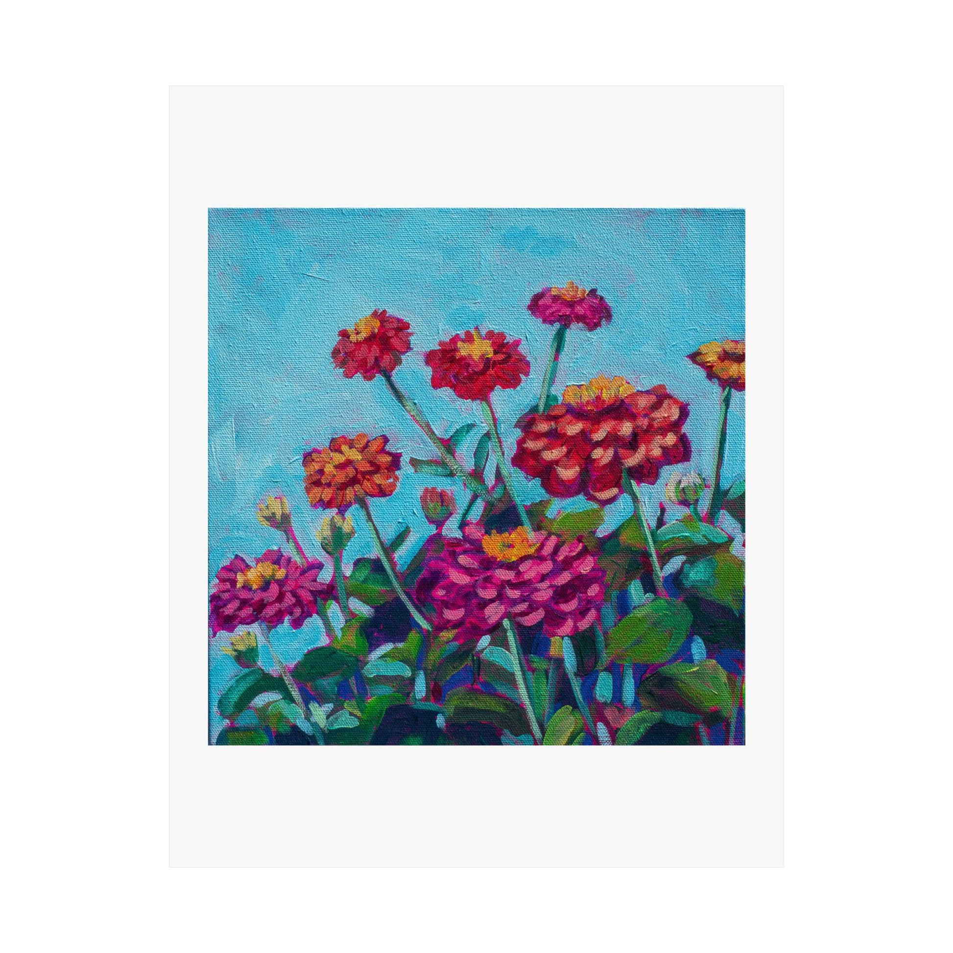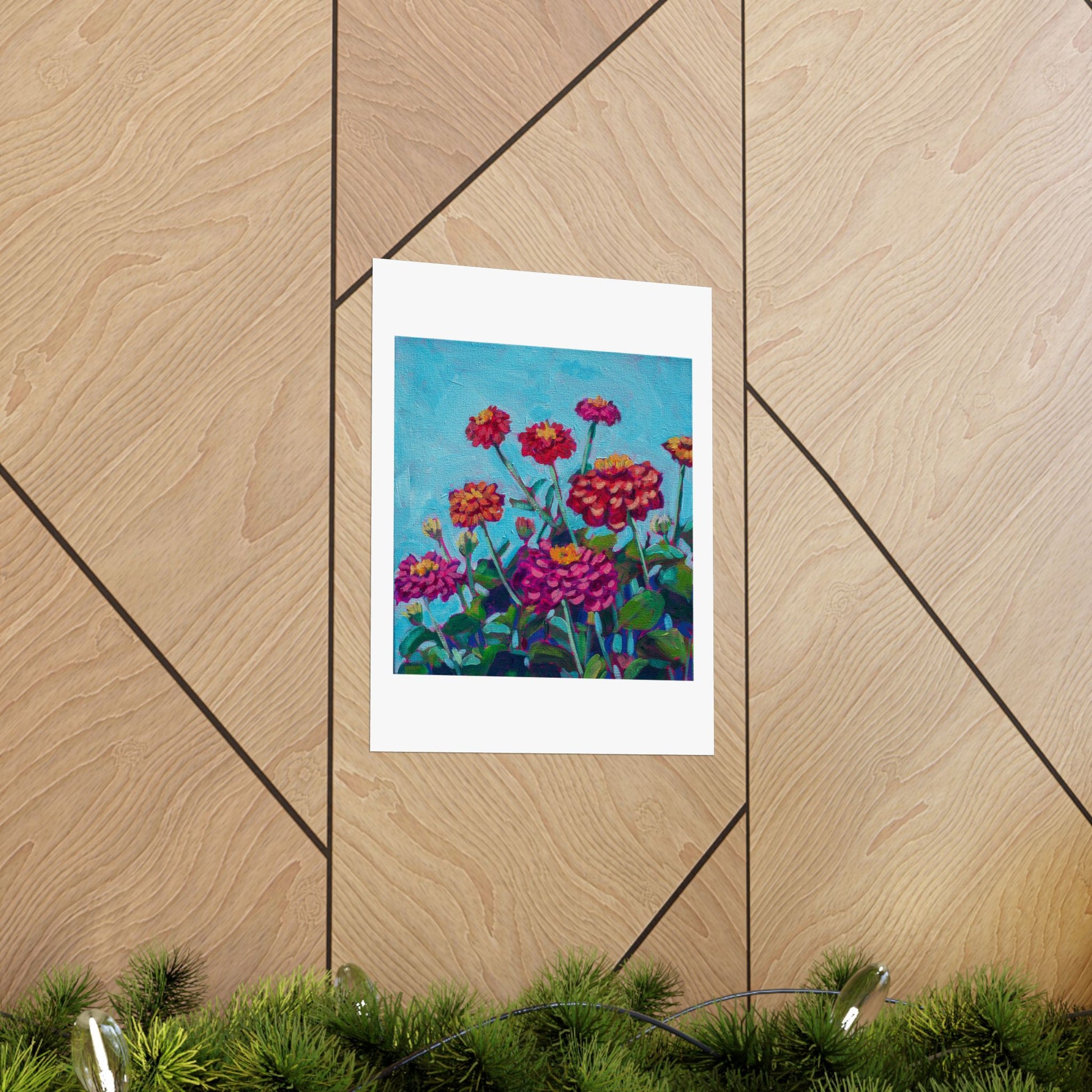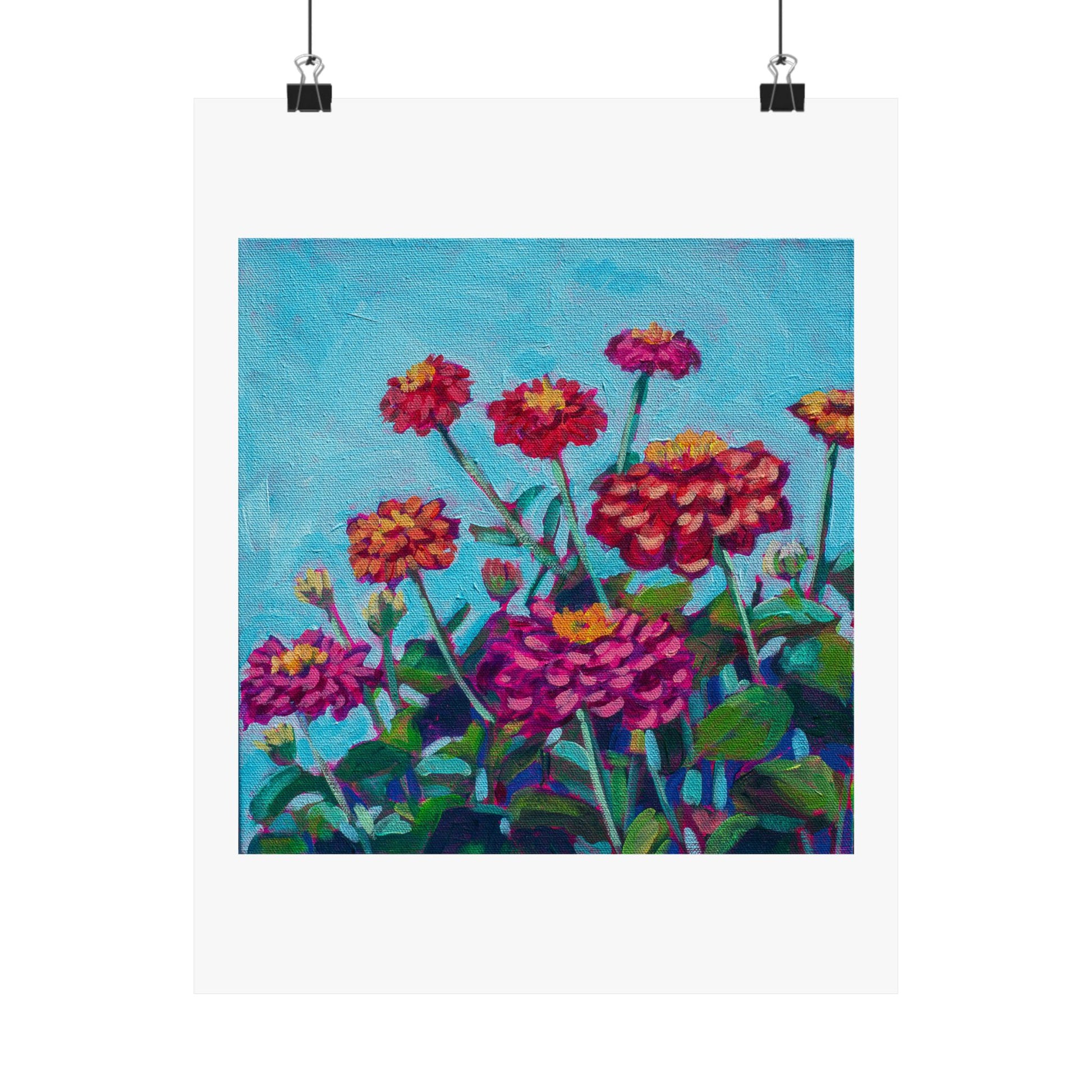 Happy Zinnias floral— Matte Paper Poster Reproduction