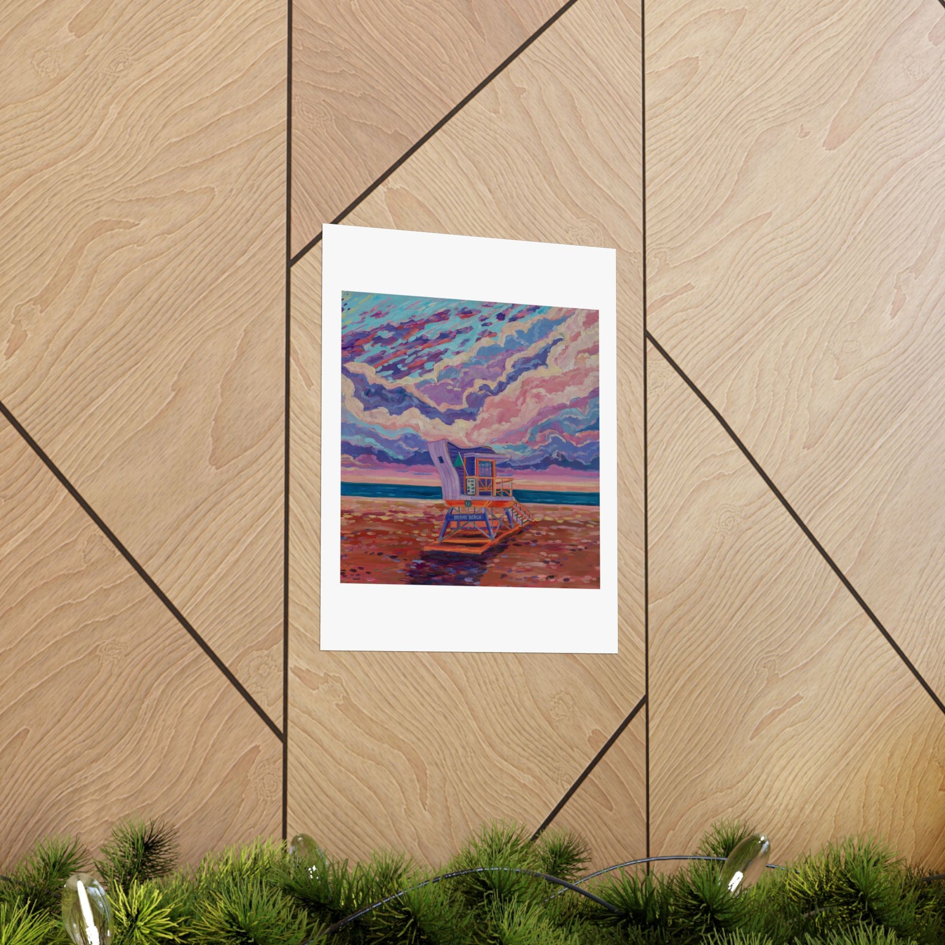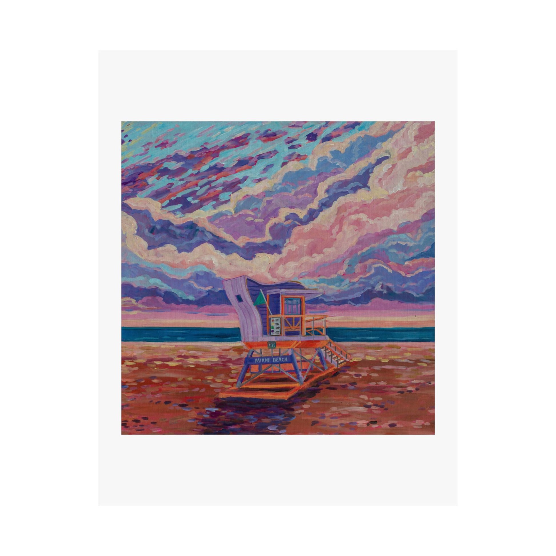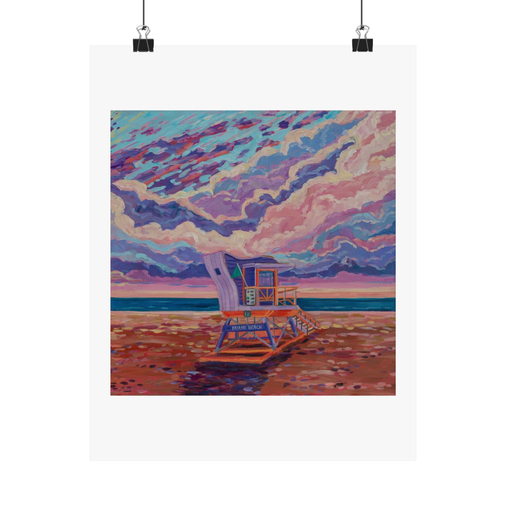 Purple lifeguard station Miami Beach— Matte Paper Poster Reproduction