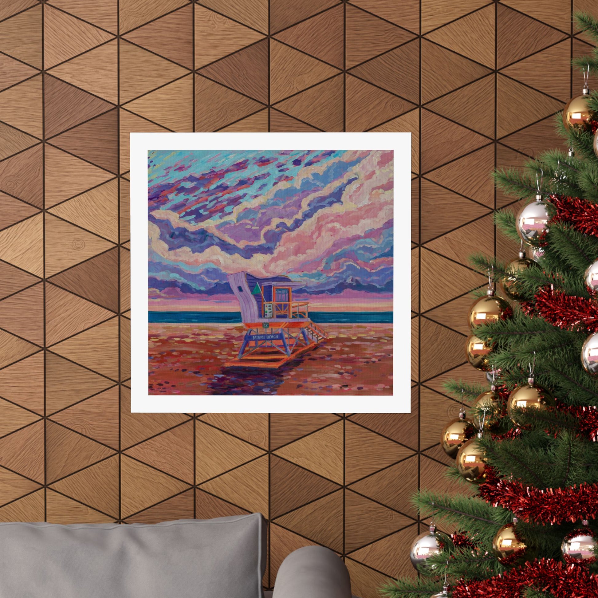 Purple lifeguard station Miami Beach— Matte Paper Poster Reproduction