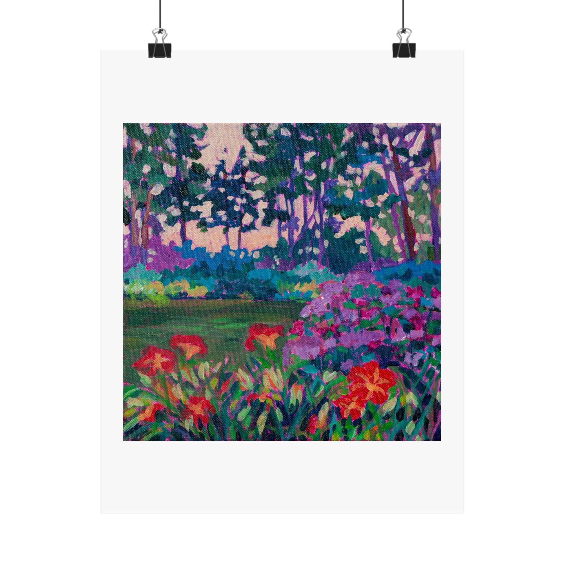 Red lilies at dawn— Matte Paper Poster Reproduction
