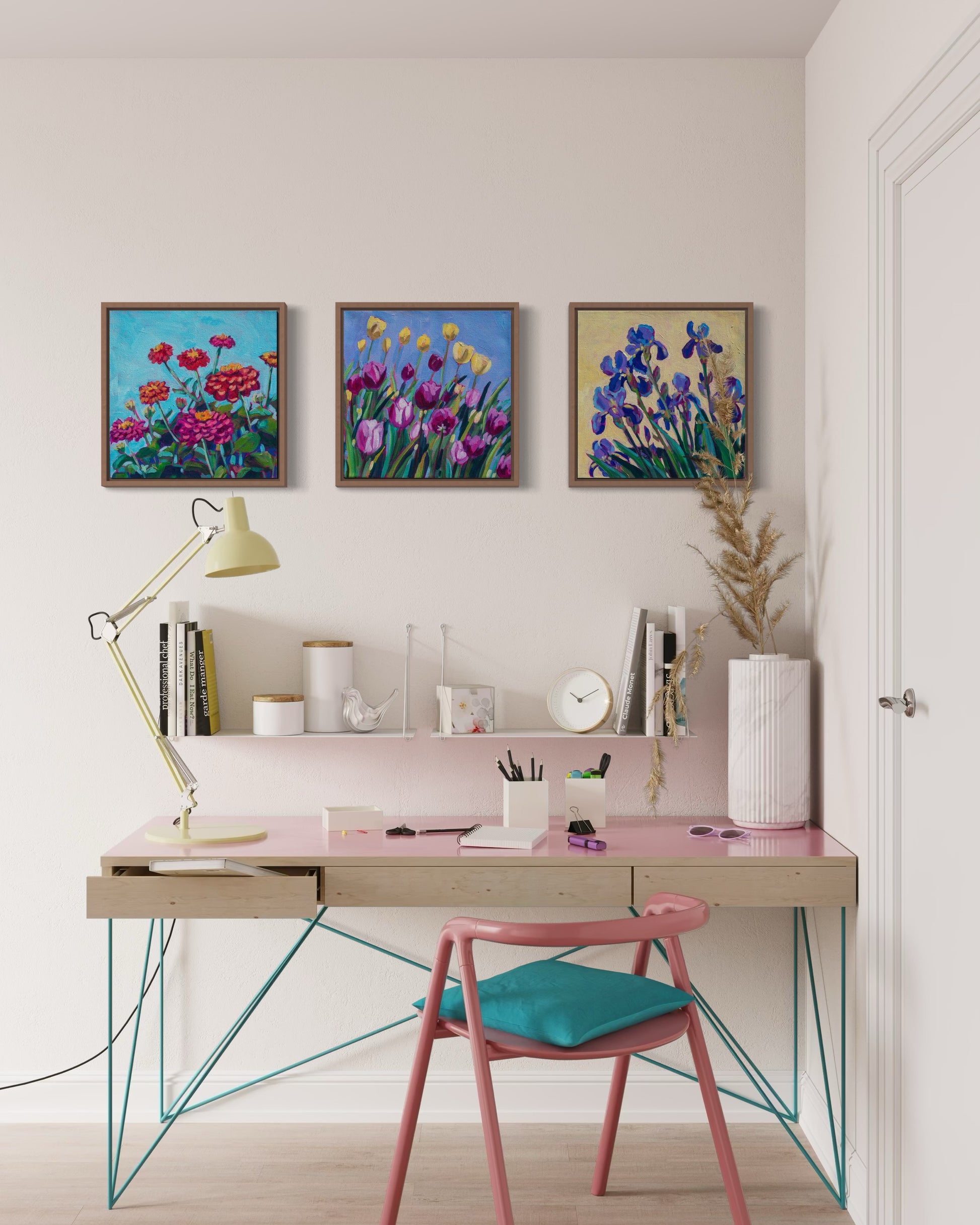 Bold, pops of color, artwork that lifes your spirits and makes any space one you want to be in!