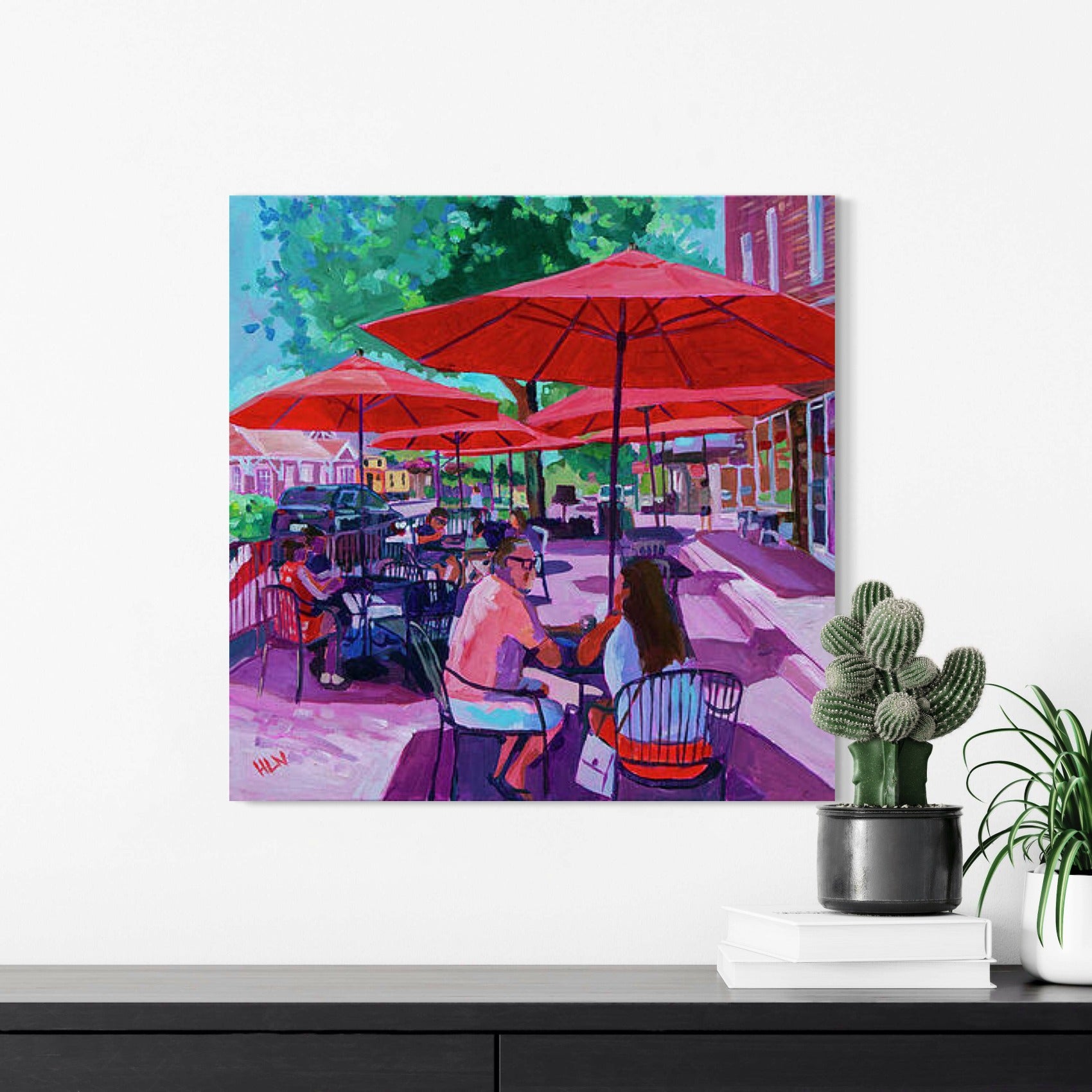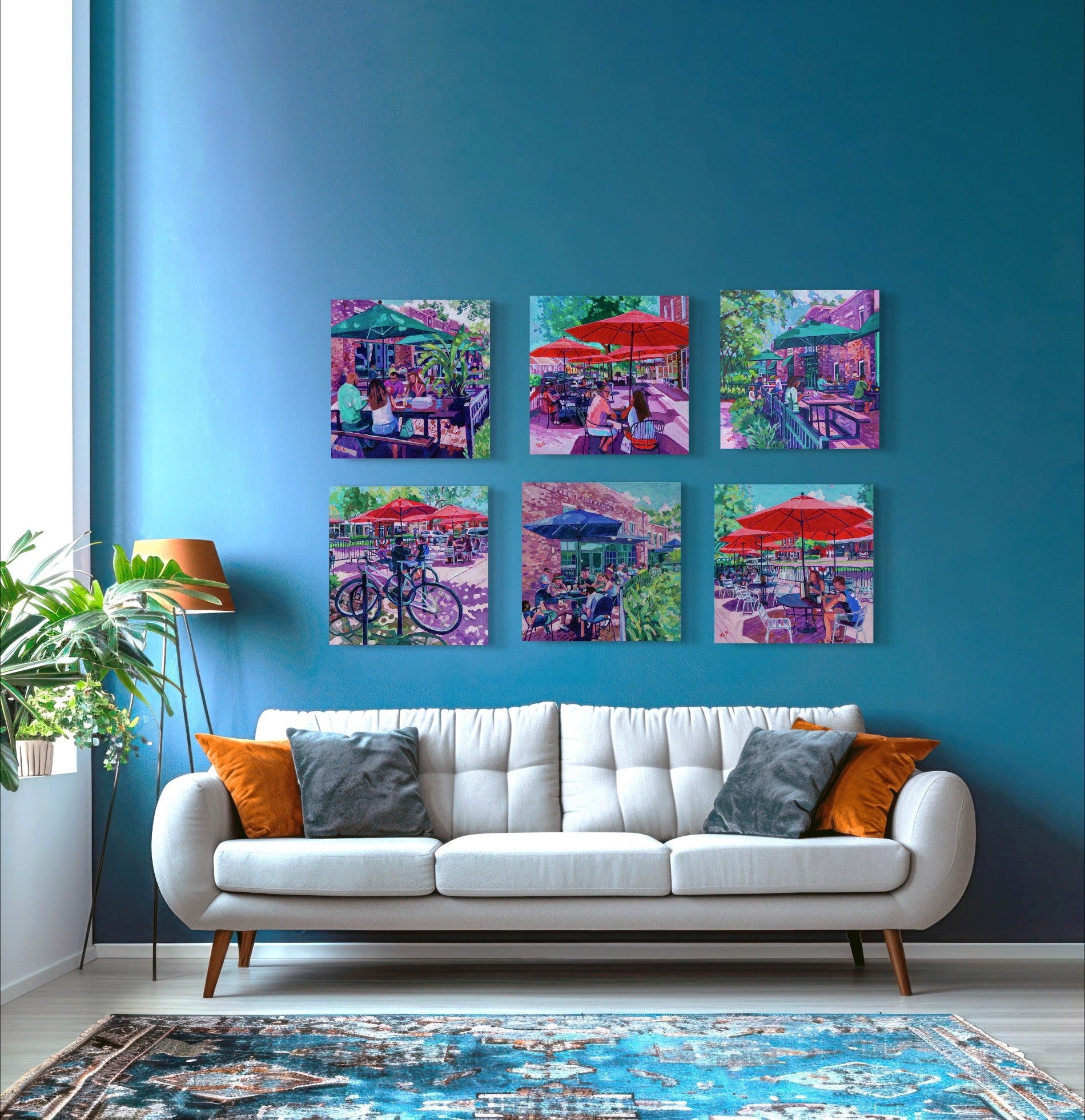 This original 20x20-inch painting reflects the longing for connection and normalcy amid the pandemic's disruptions. Inspired by downtown Winter Garden, where street parking was reimagined to provide additional seating and foster community engagement, this artwork embodies the spirit of stepping out of our bubbles and reconnecting with others.