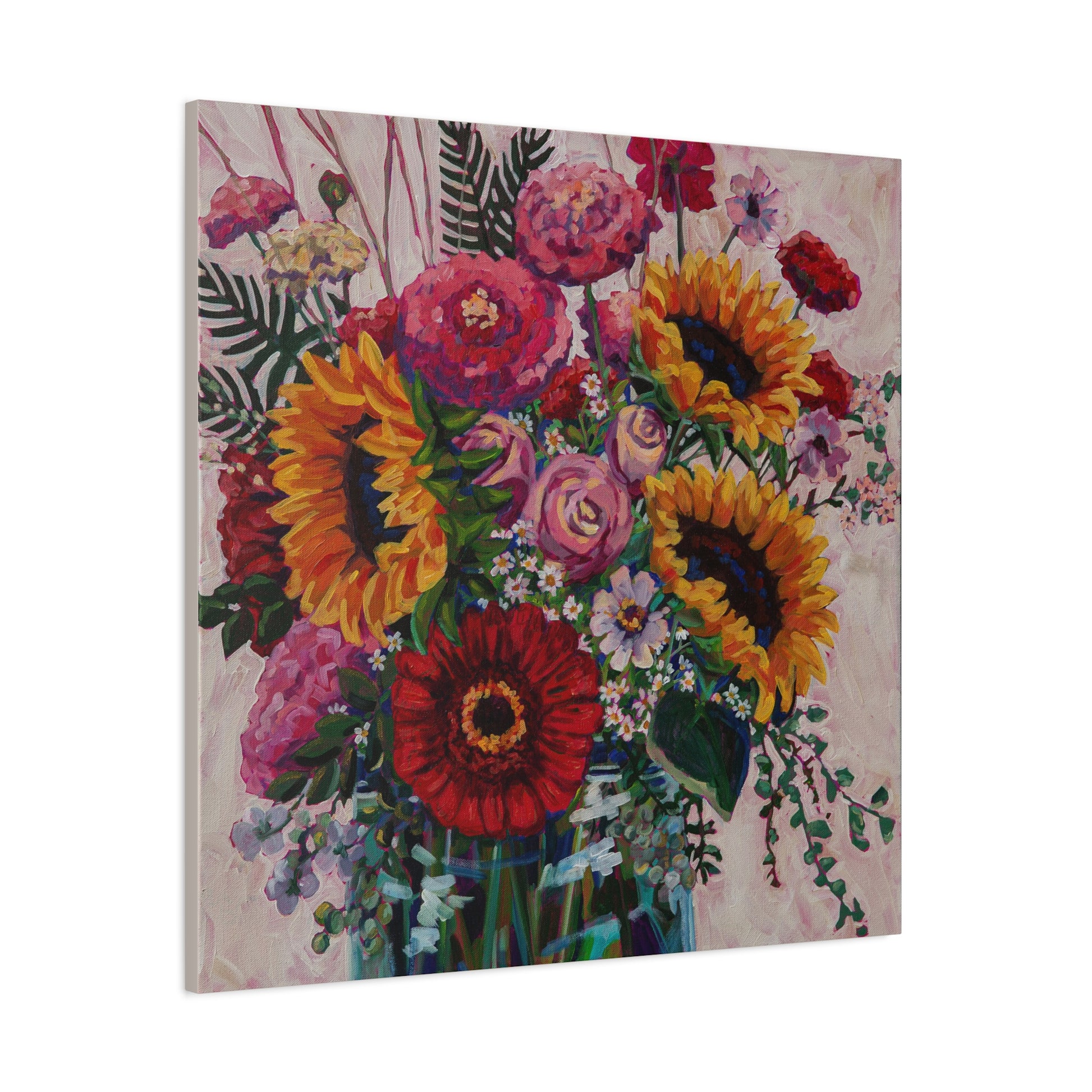 Sunflower and Zinnia Still Life —Matte Canvas, Stretched, 1.25"