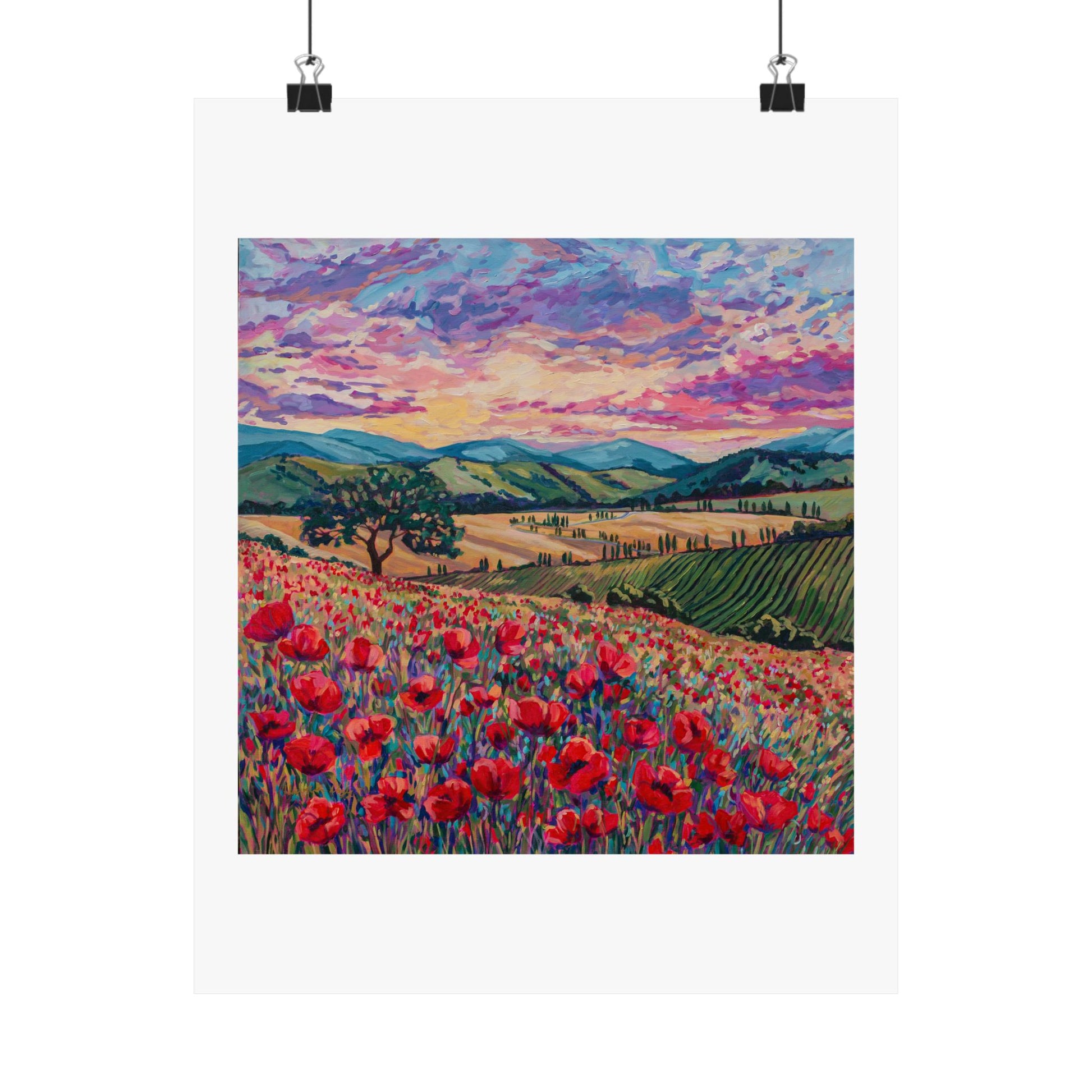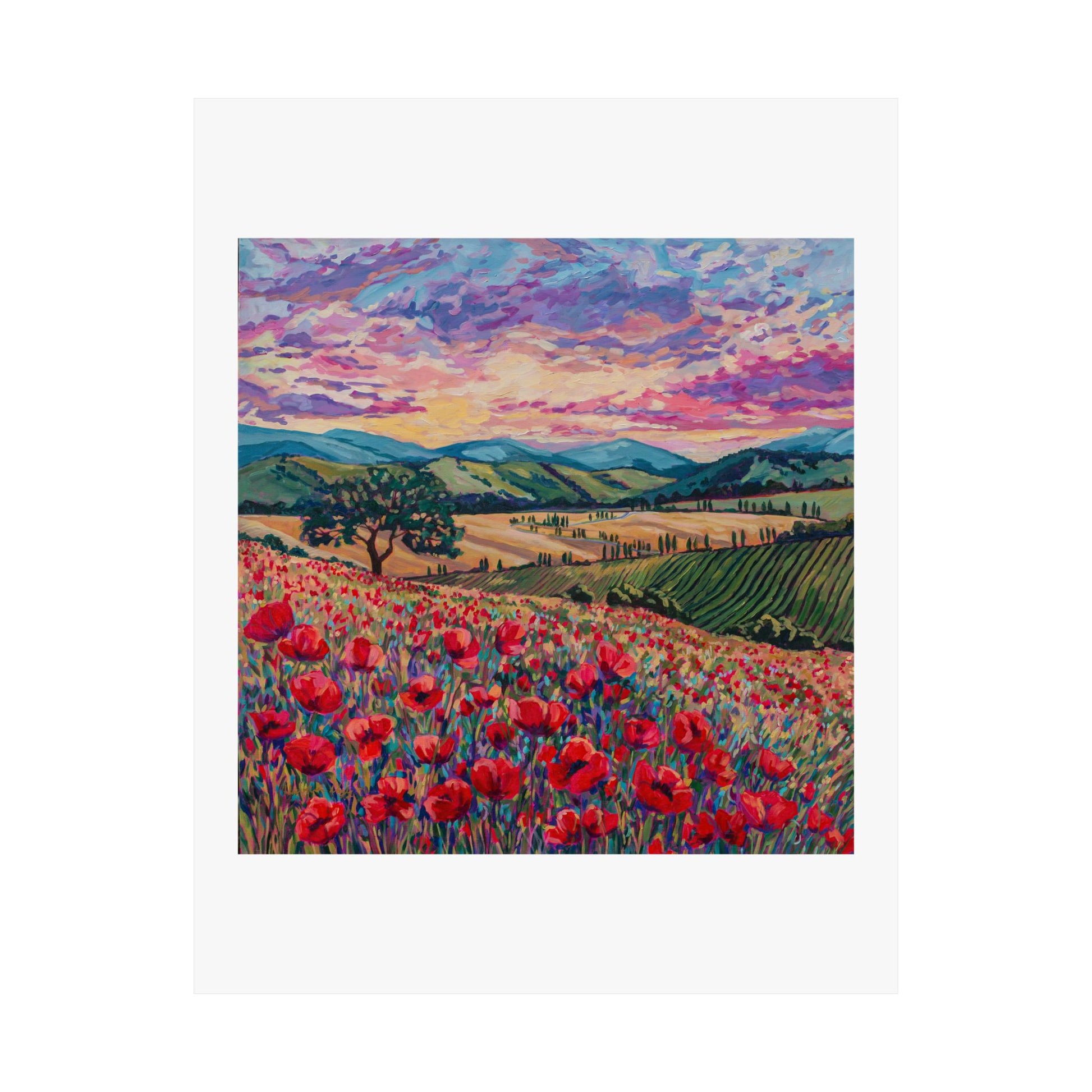 Tuscan Poppies and Poplars— Matte Paper Poster Reproduction