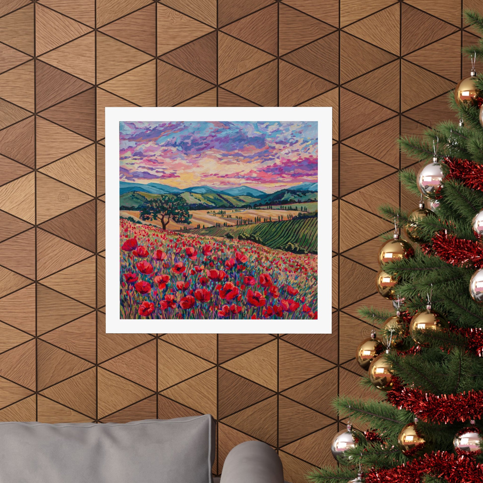 Tuscan Poppies and Poplars— Matte Paper Poster Reproduction